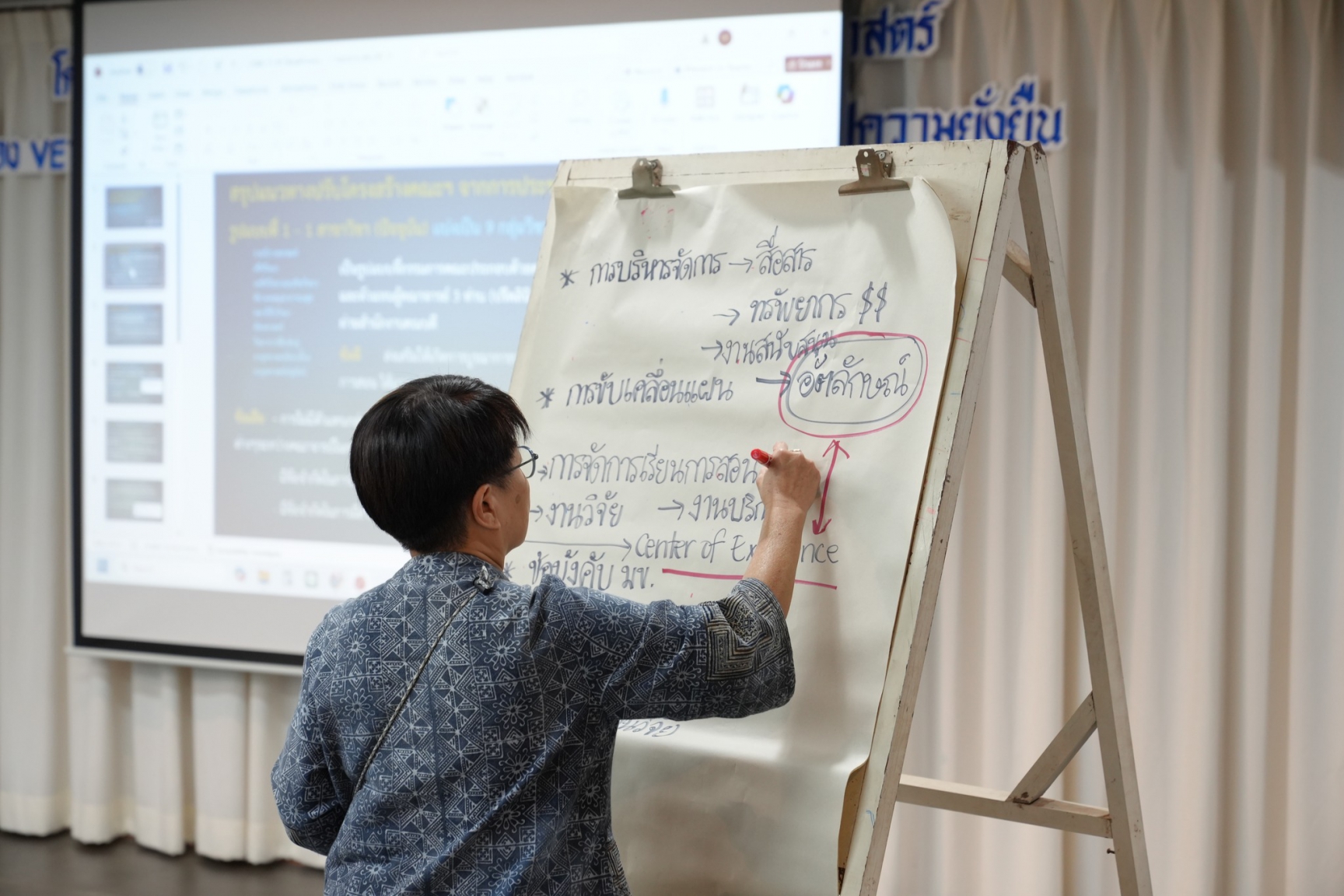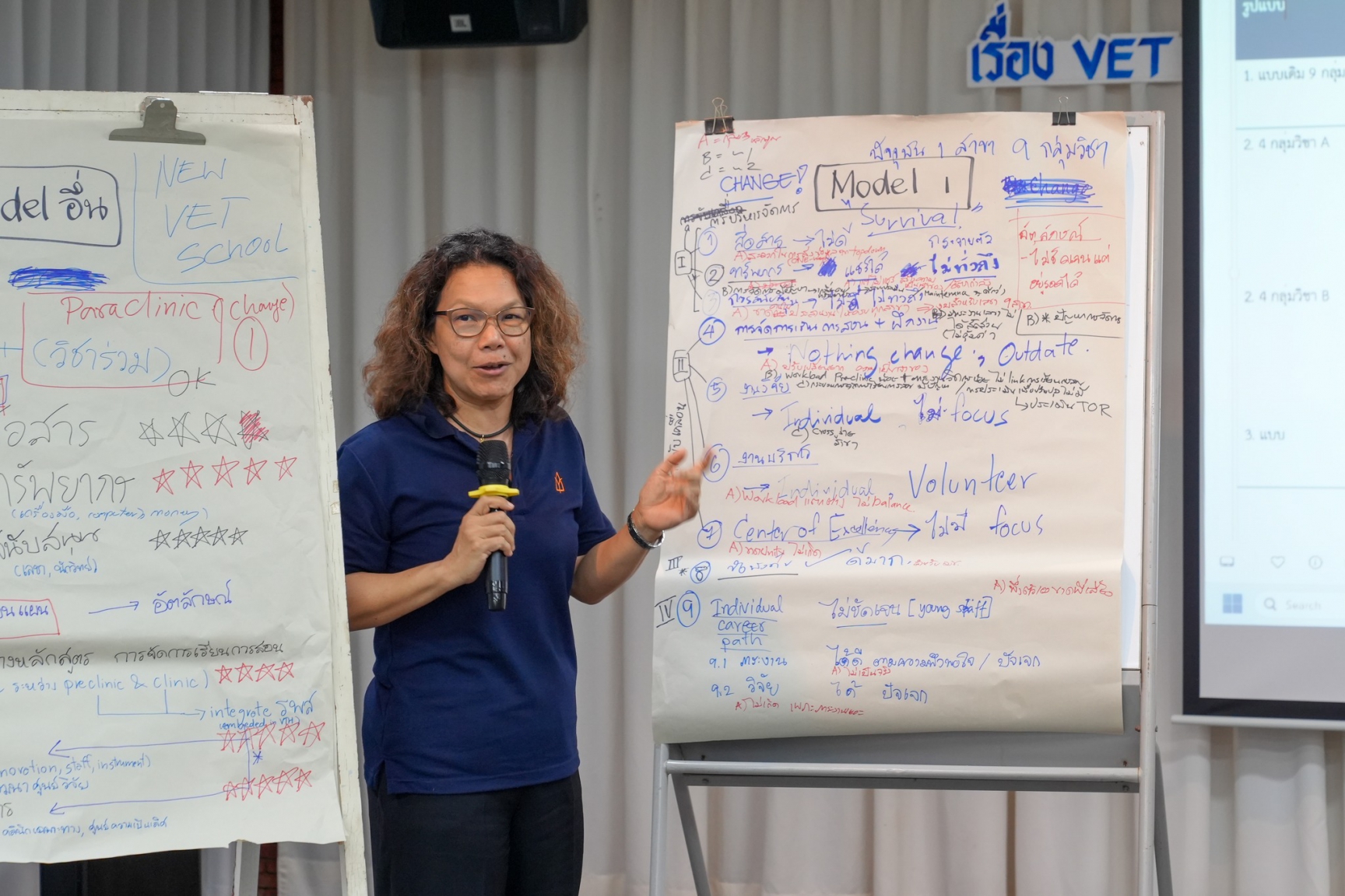 การสัมมนาจัดขึ้นในรูปแบบการอภิปรายและเสวนา โดยมี สพ.ญ.ดร.วันทนีย์ กัลล์ประวิทธ์ และ น.สพ.อาคม ชีวะเกรียงไกร ทำหน้าที่ผู้นำกระบวนการ (Facilitator) เพื่อเปิดเวทีแลกเปลี่ยนความคิดเห็นและร่วมกำหนดทิศทางการพัฒนาคณะสัตวแพทยศาสตร์ให้ก้าวสู่ความยั่งยืนอย่างแท้จริง.