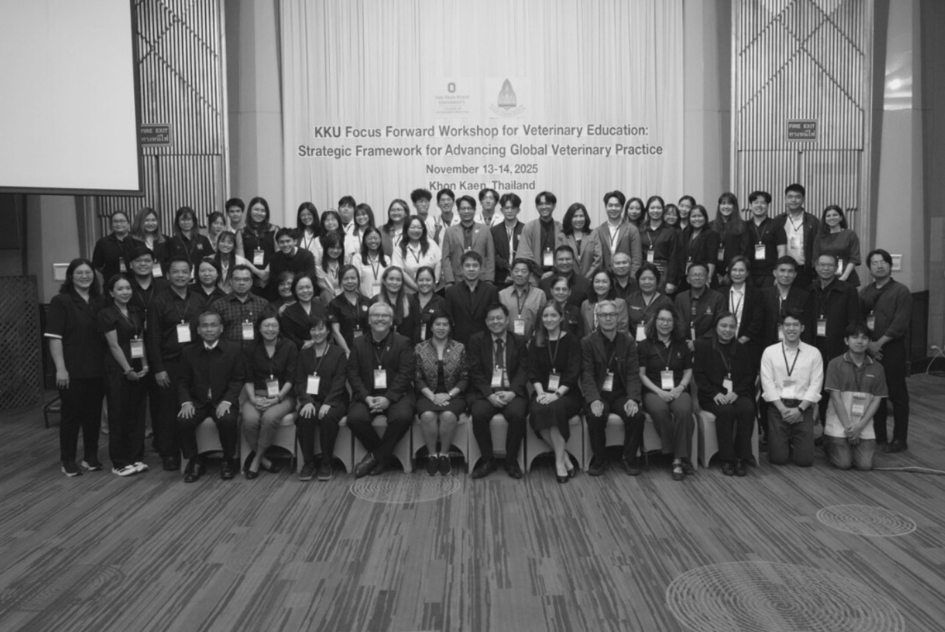 วันที่ 12-14 พฤศจิกายน 2568 ที่ผ่านมา คณะสัตวแพทยศาสตร์ ร่วมกับ Ohio State University (OSU) ได้ร่วมกันจัดกิจกรรม KKU Focus Forward Workshop for Veterinary Education: Strategic Framework for Advancing Global Veterinary Practice (เรียกชื่อย่อว่า Focus Forward) ซึ่งเป็นส่วนหนึ่งของโครงการพัฒนาสมรรถนะของบัณฑิตจบใหม่ตามเกณฑ์องค์การโรคระบาดสัตว์โลก (WOAH) วัตถุประสงค์หลักของกิจกรรม Focus Forward คือการจัดทำแผนปฏิบัติการเพื่อการปรับปรุงหลักสูตรและเนื้อหารายวิชารวมถึงวิธีการสอน เพื่อพัฒนาสมรรถนะของบัณฑิตสัตวแพทย์ โดยได้รับเกียรติจากหัวหน้าโครงการ ได้แก่ Dr. Armando Hoet, Dr. Amanda Berrian และ Dr. Alice De Olieviera Matos จาก OSU เป็นวิทยากรหลัก และผู้แทนจาก WOAH ได้แก่ ดร.นรี เกตุสิงห์ เข้าร่วมสังเกตการณ์และจัดทำแผน มีคณาจารย์จากคณะสัตวแพทยศาสตร์ร่วมเป็นผู้ดำเนินรายการ และคณบดี รศ.น.สพ.ดร. นฤพนธ์ คำพา กล่าวต้อนรับผู้เข้าร่วม ในกิจกรรมประกอบด้วยผู้เข้าร่วมจัดทำแผนปฏิบัติการจากภาคส่วนต่างๆ ได้แก่ อาจารย์ ผู้ใช้บัณฑิตจากภาครัฐและภาคเอกชน ศิษย์เก่า และนักศึกษาปัจจุบันในหลักสูตร สพ.บ. รวมทั้งหมดกว่า 70 คน กิจกรรมในวันที่ 12 พฤศจิกายน 2568 จัดที่ห้องประชุมอาชาไนย คณะสัตวแพทยศาสตร์ กิจกรรมในวันที่ 13-14 พฤศจิกายน 2568 จัดที่โรงแรมพูลแมน จังหวัดขอนแก่น ผลการจัดกิจกรรมพบว่าบรรลุตามวัตถุประสงค์ และมีกำหนดการจัดกิจกรรมต่อเนื่องในขั้นตอนต่อไปในช่วงปีการศึกษาถัดไป