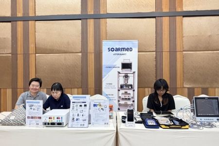บรรยากาศภายในงานเต็มไปด้วยความกระตือรือร้นและการมีส่วนร่วมอย่างเข้มข้น ผู้เข้าร่วมอบรมแลกเปลี่ยนประสบการณ์จากการปฏิบัติงานจริง ทั้งจากคลินิกและโรงพยาบาลสัตว์ขนาดต่าง ๆ การจัดพื้นที่เน้นการเรียนรู้แบบบูรณาการซึ่งผสานการบรรยายเชิงทฤษฎี การสาธิตแบบใกล้ชิด และการฝึกปฏิบัติจริง (hands-on) ช่วยให้การถ่ายทอดองค์ความรู้เป็นไปอย่างมีประสิทธิภาพและสามารถนำไปปรับใช้ได้จริง