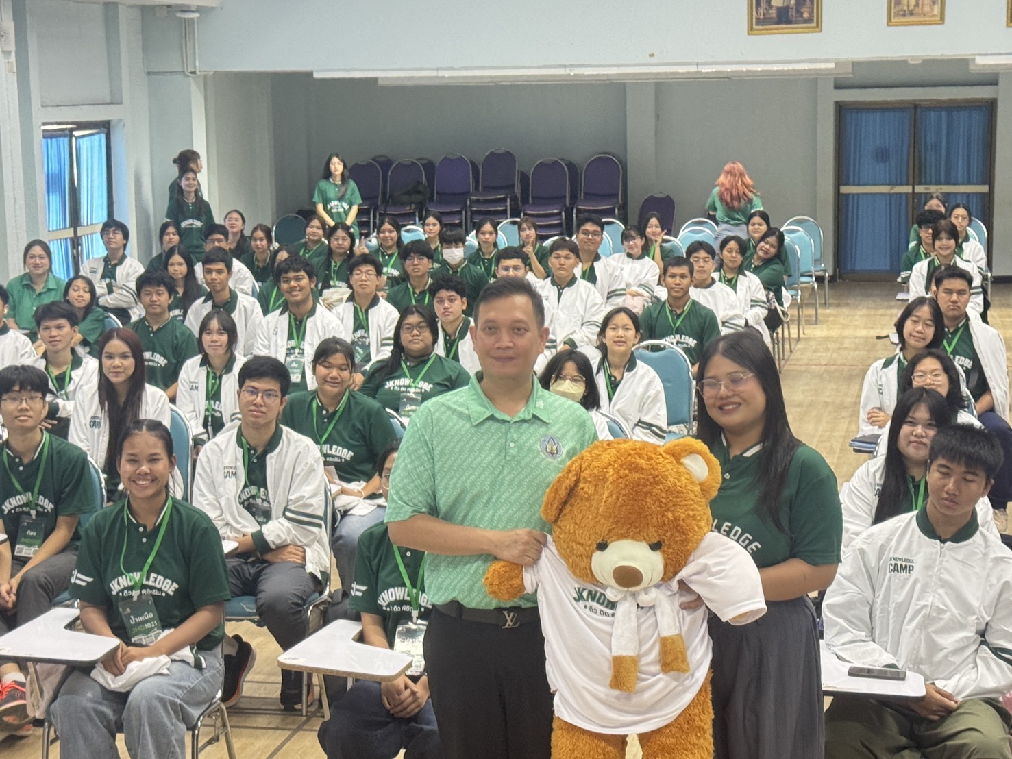 เวลา 09.00 น. ผศ.น.สพ.ดร.สุวลักษณ์ ศรีภสุภา ผู้ช่วยคณบดีฝ่ายสารสนเทศและศิษย์เก่าสัมพันธ์ ได้ให้เกียรติเป็นตัวแทนคณะฯ ในการกล่าวต้อนรับคณะศึกษาดูงานอย่างเป็นกันเอง พร้อมทั้งบรรยายพิเศษให้แก่เยาวชนในโครงการจำนวน 135 คน ในหัวข้อ "แนวทางการศึกษาต่อและประสบการณ์การปฏิบัติงานด้านสัตวแพทย์"