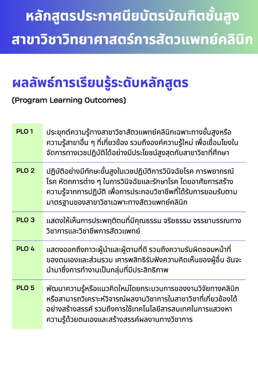 หน้าหลัก 26 พ.ค. 2568 | 451 ครั้ง หลักสูตรประกาศนียบัตรบัณฑิตชั้นสูงสาขาวิชาวิทยาศาสตร์การสัตวแพทย์คลินิก แชร์ Facebook Twitter LINE